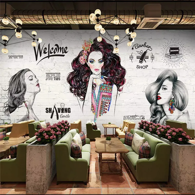Vintage Barber Shop Mural Wallpaper Hair Salon Hairstyle Center Industrial Decor Cement Wall Brick