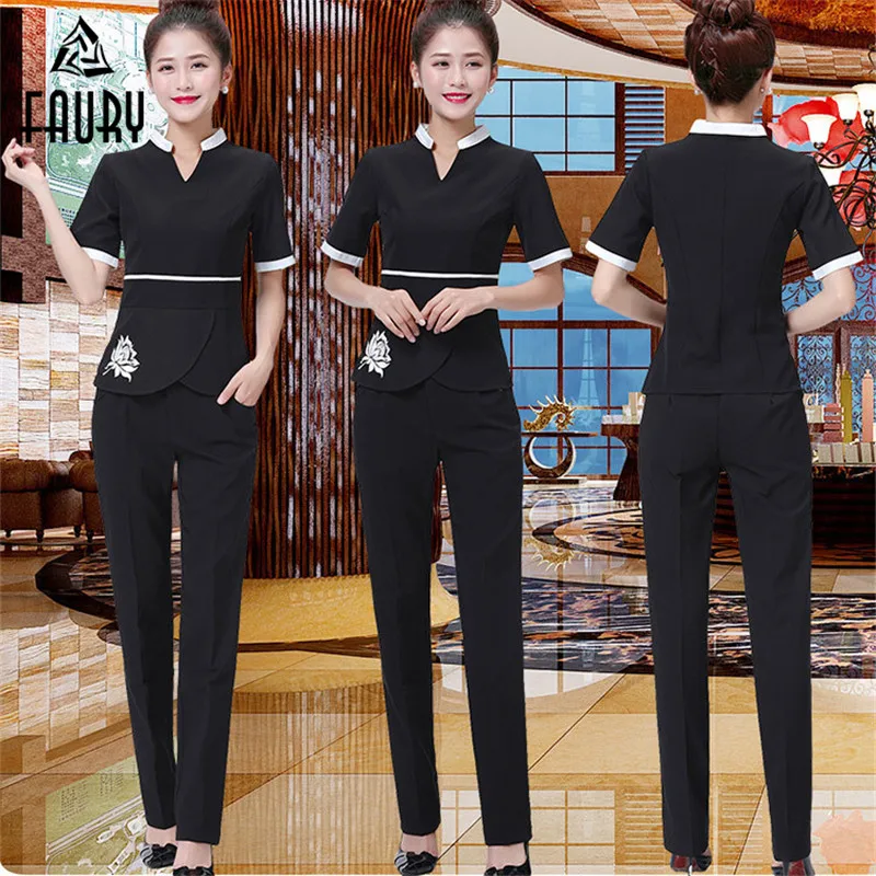 Women V-neck Short Sleeve Print Tops Pant Spa Sauna Shop Beauty Salon Work Wear Medical Hospital Nu